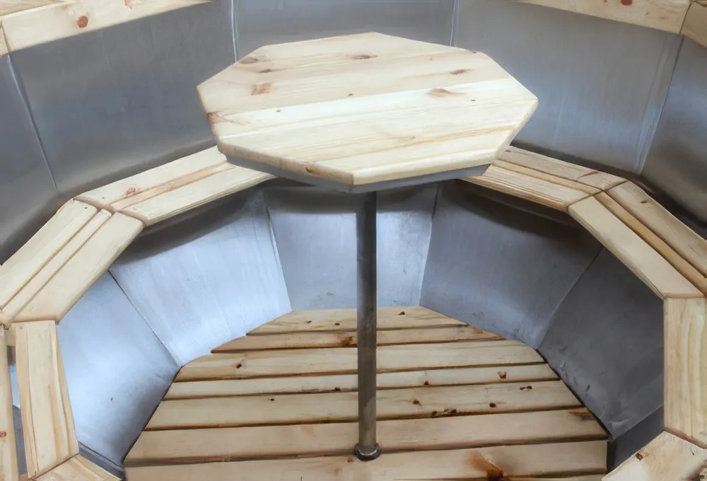 Банный чан из нержавеющей стали Ø-1750 на подставке с ветрозащитой и печью СТ3