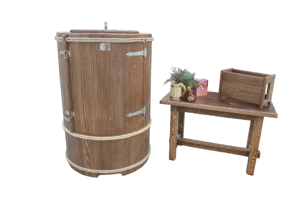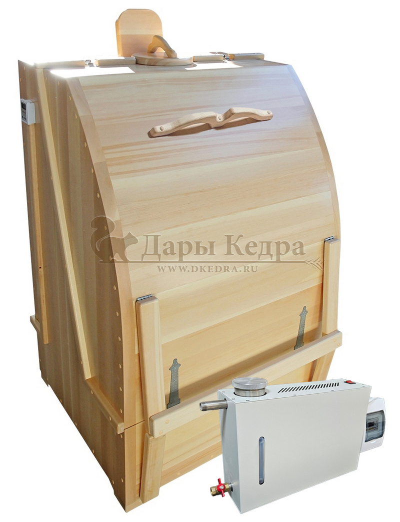 Готовый комплект - это полностью укомплектованный набор с фитобочкой для процедур парения. Квадратная двухрежимная модель из кедра может быть использована как инфракрасная сауна, так и парная. Карбоновые излучатели отвечают за сухое парение, они находятся на внутренней стороне дверцы и задней стенке фитобочки. Влажное парение происходит за счет поступления горячего пара в бочку через паропровод. Толщина стенок составляет 40-45 мм, что позволяет увеличить срок службы изделия.