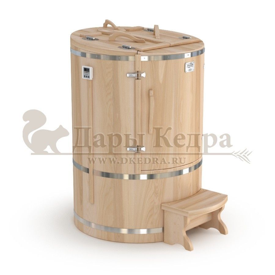 Кедровая бочка (фитобочка) круглая «Двухрежимная Профессиональная» Более продвинутая модель кедровой бочки (фитобочки). Компактное и в тоже время универсальное решение, совмещает в себе фитобочку и инфракрасную сауну. Благодаря толстым стенкам, данная модель отлично подойдет для частого домашнего или коммерческого использования. Пульт управления инфракрасной сауной и парогенератор премиум класса для кедровой бочки (фитобочки) идёт в комплекте, ничего дополнительно приобретать не нужно. Благодаря диаметру 900 мм, в этой бочке будет комфортно даже крупным людям. Купить кедровую бочку (фитобочку) круглой формы двухрежимную профессиональную Вы можете у нас на прямую по цене производителя.