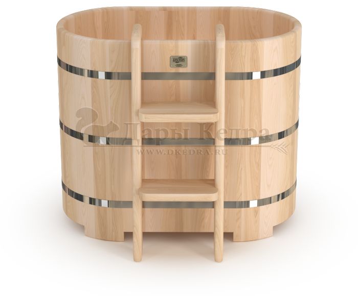 Овальная купель для бани из кедра Это герметичная емкость для воды из кедра, которая используется для отдыха и охлаждения тела после процедур парения. Купель оснащена лавочками, приставной и внутренней лестницей из кедра. За счет стяжных болтов обручи из нержавеющей стали плотно прилегают к кедровой купели. Это позволяет равномерно распределять нагрузку воды и сохранить форму изделия в период эксплуатации. При правильном уходе купель для бани не рассыхается и не подвергается гниению. Овальная купель подходит для уличного и комнатного использования. Обязательно обращайте внимание на ширину дверных проёмов. Если они не позволяют занести изделие в собранном виде, то рекомендуем заказать разборную модель купели, которая оплачивается отдельно. При взаимодействии древесины кедра с водой активируются эфирные масла и фитонциды, благодаря чему организм насыщается полезными веществами.